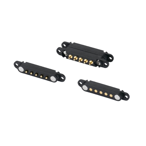 磁吸連接器是在彈簧針連接器基礎上增加磁鐵組合而成,采用汝鐵硼永磁磁鐵,保證了公母穩固可靠的連接。磁吸連接器彌補了傳統連接器缺乏的插拔方便、安全、體積緊湊、容易清潔,可側向拔出等優勢,真正實現100%自動定位、自動連接、快速插拔、受外力分離、強制斷開不會損壞設備的連接端口等功能;在多個領域快速得到推廣使用。