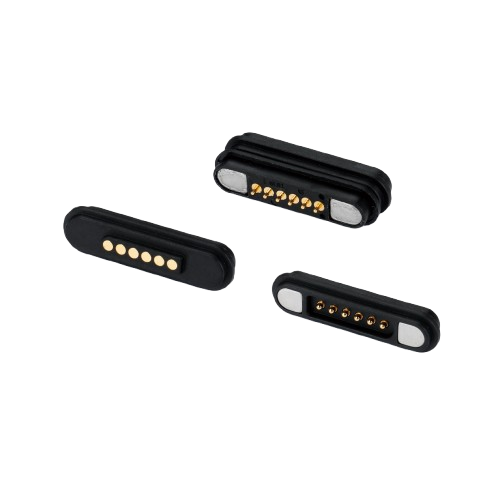 磁吸連接器是在彈簧針連接器基礎上增加磁鐵組合而成,采用汝鐵硼永磁磁鐵,保證了公母穩固可靠的連接。磁吸連接器彌補了傳統連接器缺乏的插拔方便、安全、體積緊湊、容易清潔,可側向拔出等優勢,真正實現100%自動定位、自動連接、快速插拔、受外力分離、強制斷開不會損壞設備的連接端口等功能;在多個領域快速得到推廣使用。